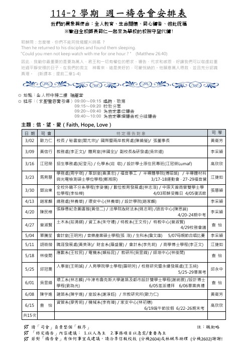 114-2週一禱告會安排表